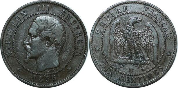 P3955 France 10 Centimes Napoléon III 1855 BB Strasbourg ->Faire offre