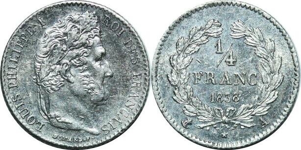 P3961 France 1/4 Franc Louis Philippe 1838 A Paris Argent Silver SUP