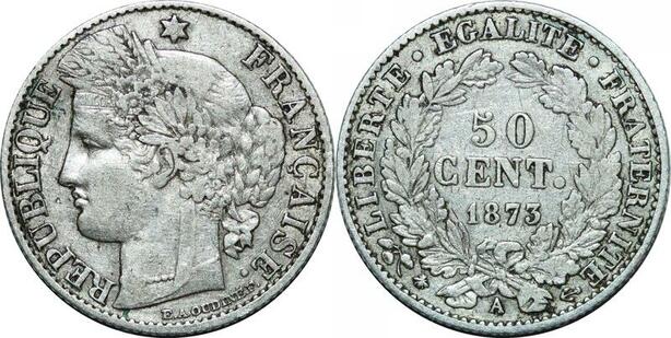 P3967 France 50 Centimes Cérès 1873 A Paris Argent Silver -> Faire offre