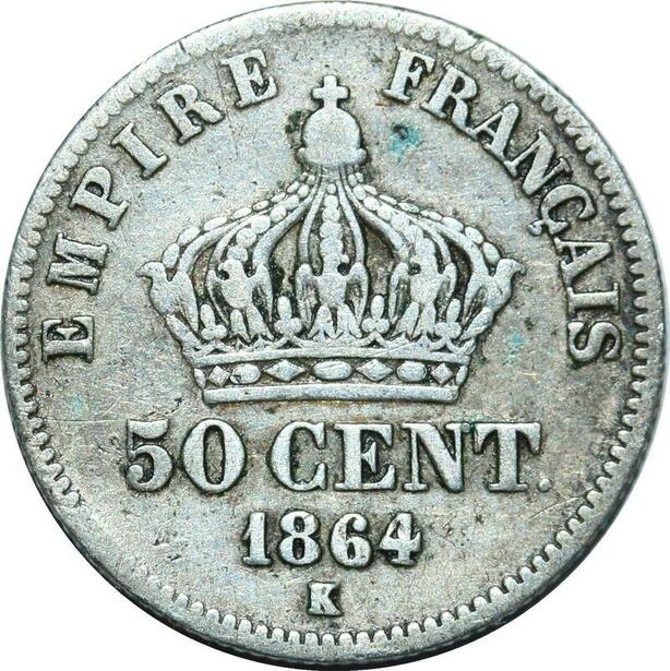 P3974 France 50 Centimes Napoléon III 1864 K Bordeaux Argent ->Faire offre