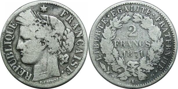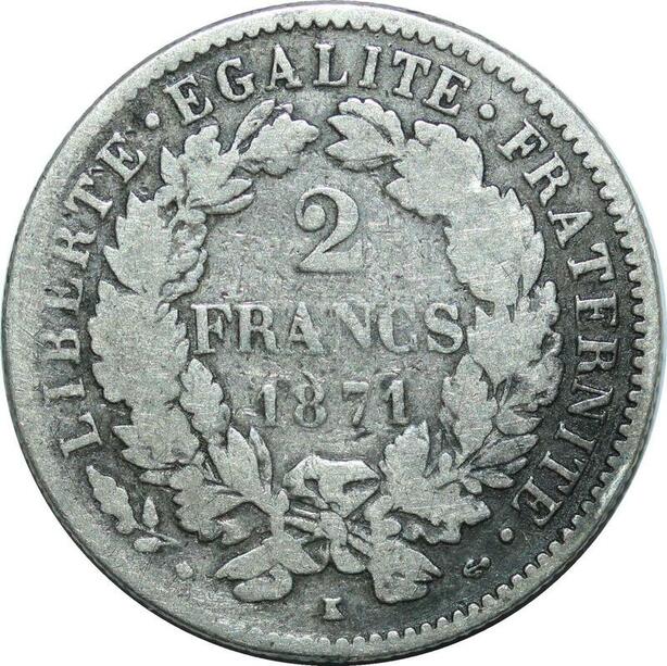 P3995 France 2 Francs Cérès 1871 K Bordeaux Argent Silver ->Faire offre
