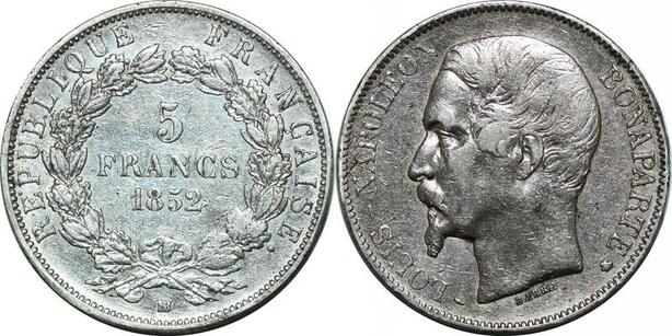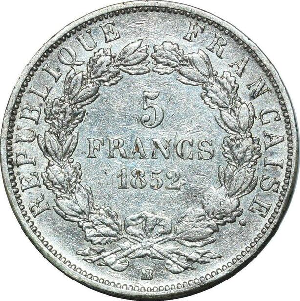 P4005 Très Rare France 5 Francs Louis Napoléon 1852 BB Strasbourg Argent ->F offre