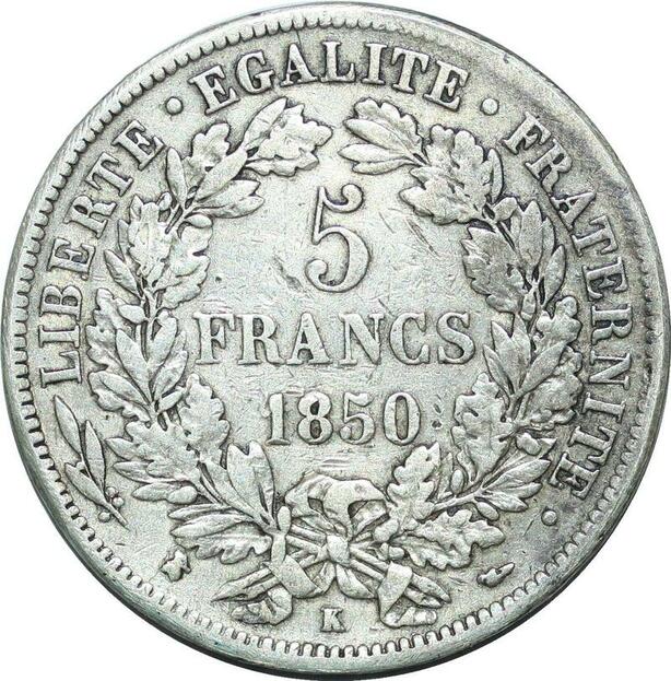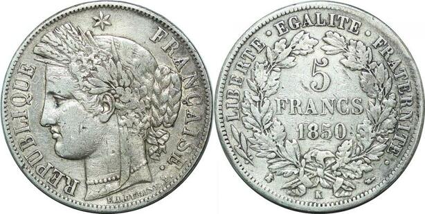 P4020 Rare France 5 Francs Cérès 1850 K Bordeaux Argent Silver ->Faire offre