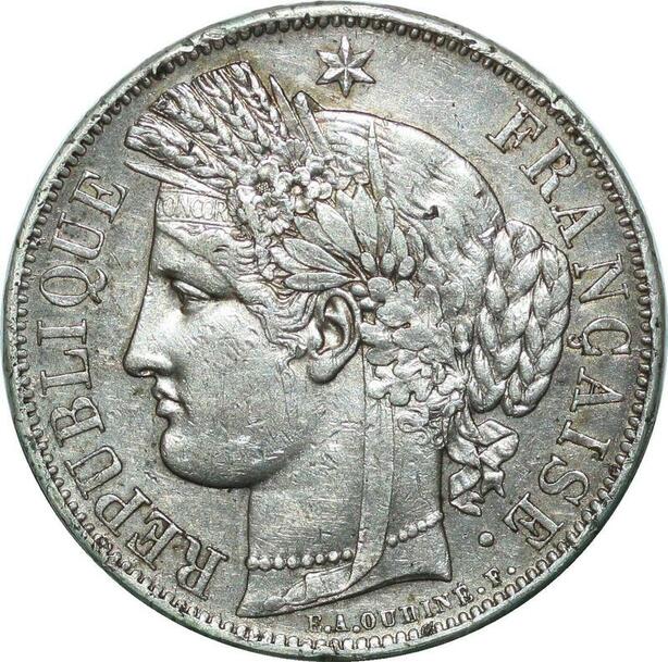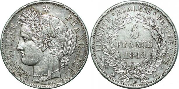 P4021 Rare France 5 Francs Cérès 1849 BB Strasbourg Argent Silver ->Faire offre