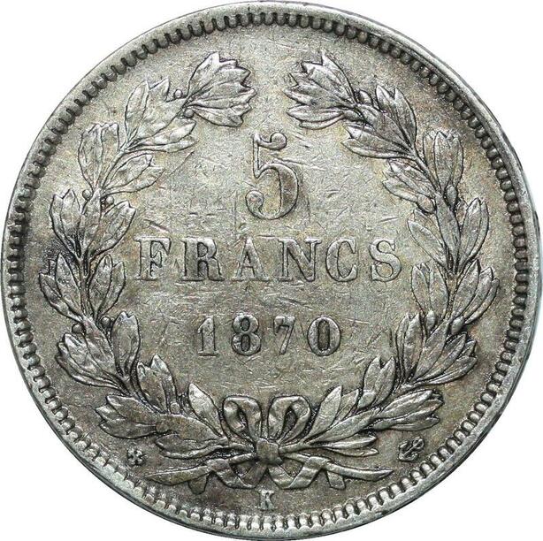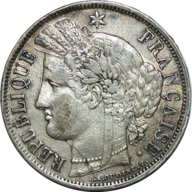 P4022 Rare France 5 Francs Cérès 1870 K Bordeaux Ancre Argent ->Faire offre
