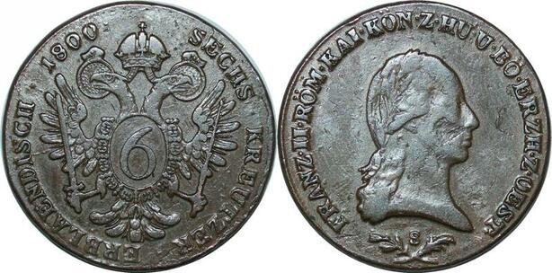 P4040 Austria Haus Habsburg 6 Kreuzer Franz II 1800 S -> Make offer