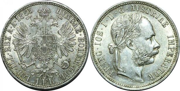 P4044 Austria Habsburg Florin Franz Joseph I 1885 Silver UNC