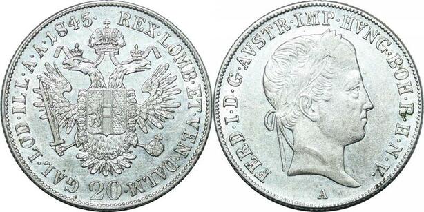 P4048 Austria Habsburg 20 Kreuzer Ferdinand I 1845 A Silver -> Make offer