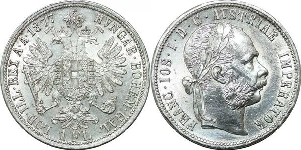 P4053 Austria Habsburg Florin Franz Joseph I 1877 Silver UNC