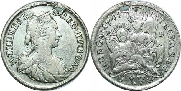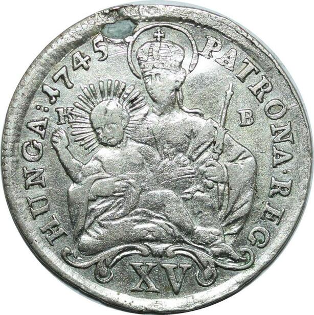P4083 Austria Habsburg 15 Kreuzer Maria Theresia 1745 KB Kremnitz Silver