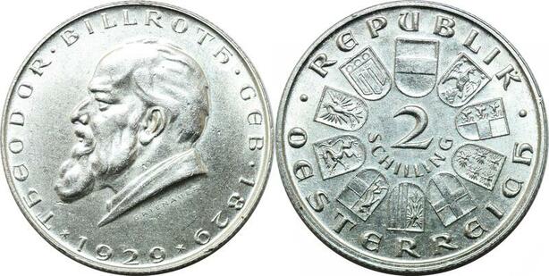 P4096 Österreich Austria 2 Schilling Theodor Billroth 1929 Silver AU