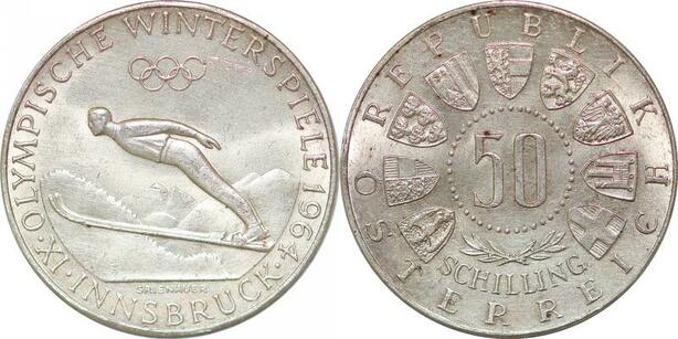 P4113 Österreich Austria 50 Schilling Olympiade Innsbruck 1964 Silver AU