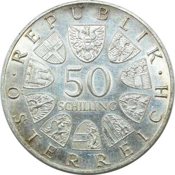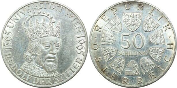 P4116 Österreich Austria 50 Schilling Rudolf Der Stifter 1965 Silver AU