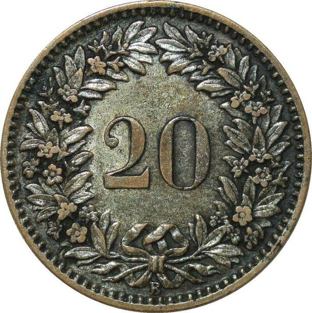 P4156 Schweiz 20 Rappen 1859 B Berne XF + AU -> Make offer