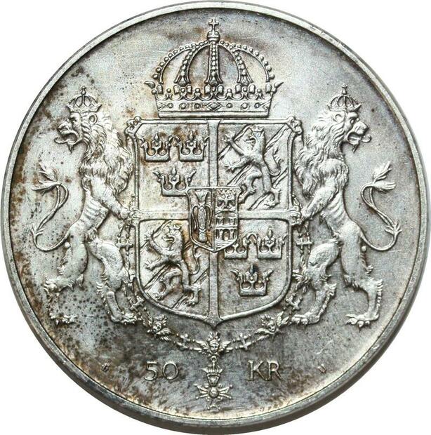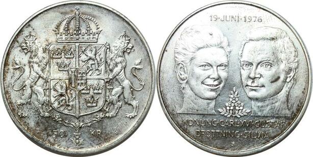 P4165 Sweden 50 Kroner Charles XVI Gustave 1976 Silver UNC -> Make offer
