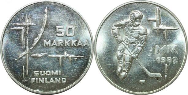 P4171 Finland 50 Markkaa Ice Hockey 1982 Silver UNC -> Make offer