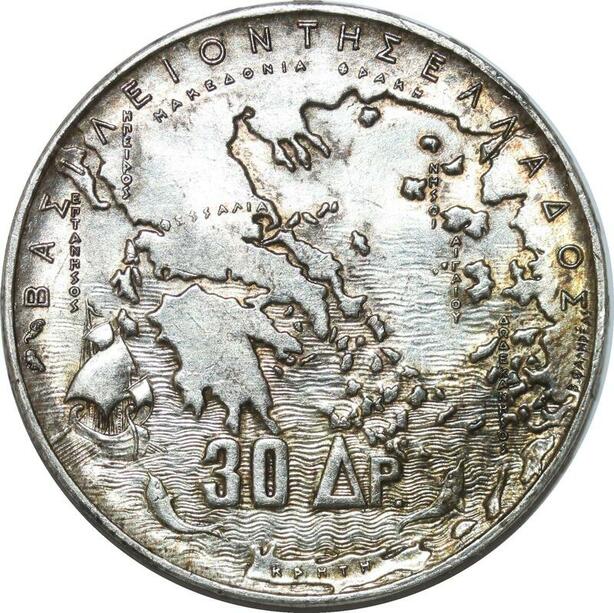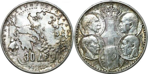 P4175 Grèce Greece 30 Drachmai Paul I 1963 Silver AU -> Make offer