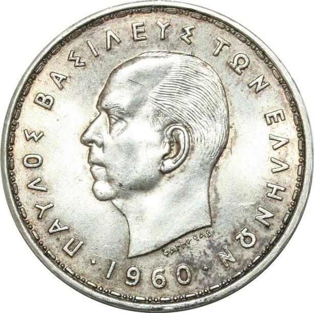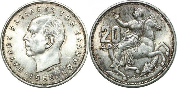 P4176 Grèce Greece 20 Drachmai Paul I 1960 Silver UNC !!!! -> Make offer
