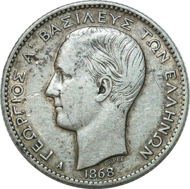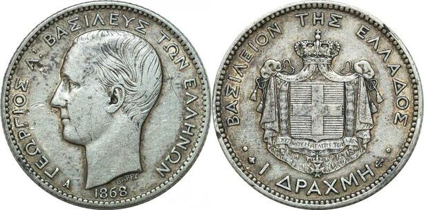 P4178 Scarce Greece Drachma George I 1868 A Paris Silver AU -> Make offer