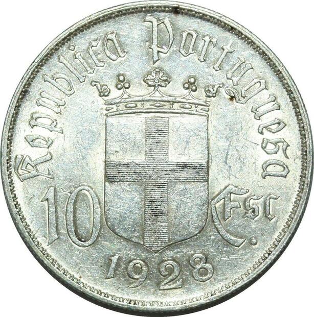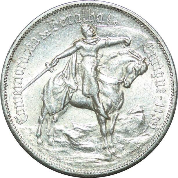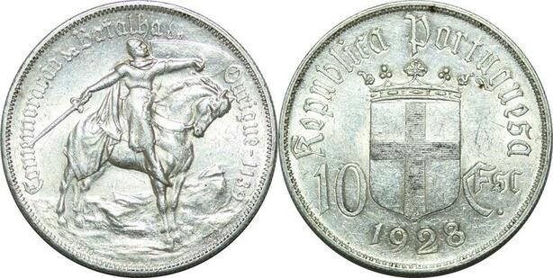 P4186 Portugal 10 Escudos 800 Years Thronbesteigung 1928 Silver AU