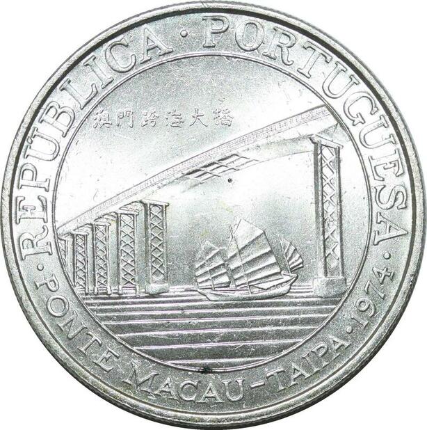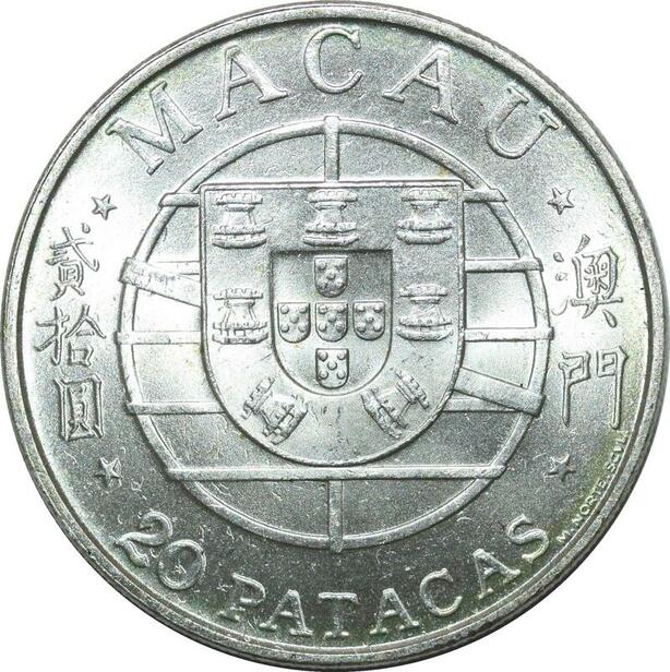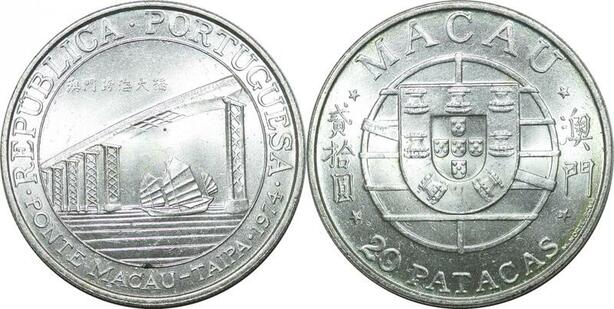 P4188 Macau Macao 20 Patacas Bridge Taipa 1974 Silver BU -> Make offer