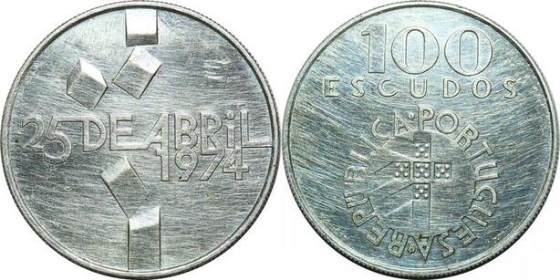 P4195 Portugal 100 Escudos 1974 Revolution Silver AU -> Make offer