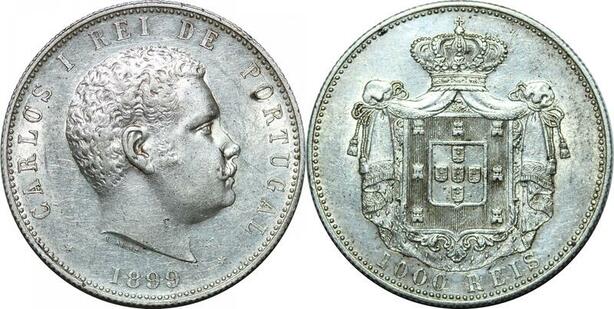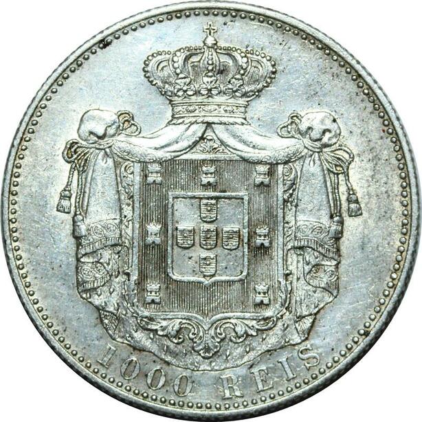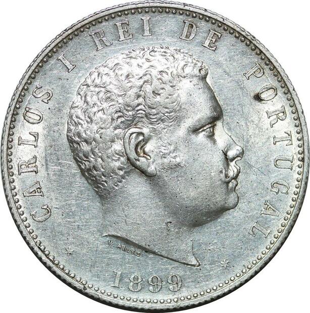 P4196 Portugal 1000 Reis Carlos I 1899 Lisbon Silver UNC !!