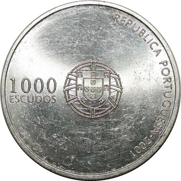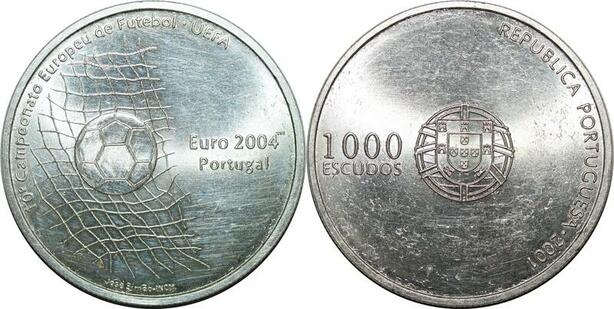 P4197 Portugal 1000 Escudos 2001 Euros Football Uefa Silver UNC