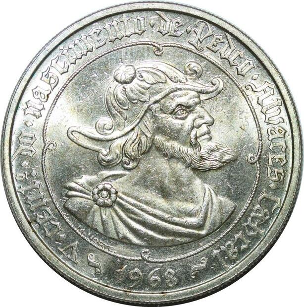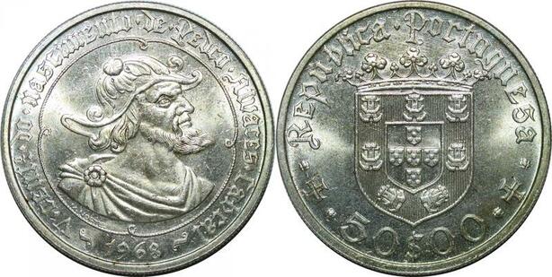 P4199 Portugal 50 Escudos Pedro Alvares Cabral 1968 Silver UNC