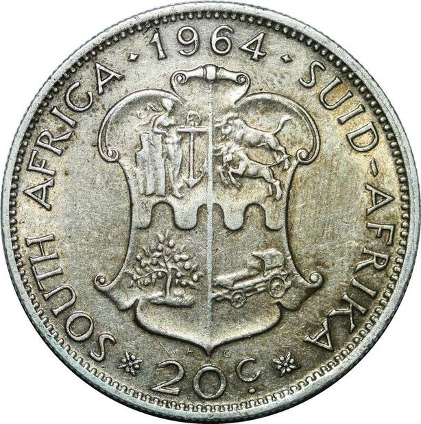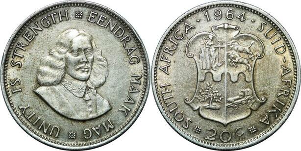 P4211 South Africa 20 Cents Jan van Riebeeck 1964 Silver UNC