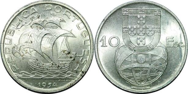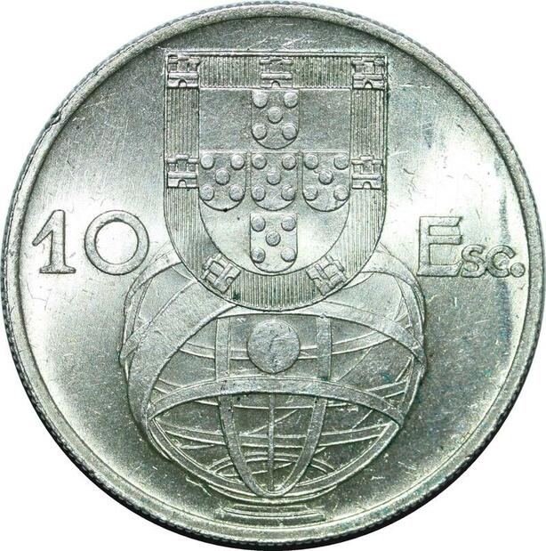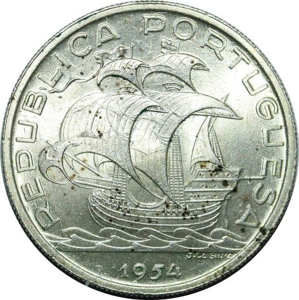 P4218 Portugal 10 Escudos Ship Joao da Silva 1955 Silver AU -> Make offer