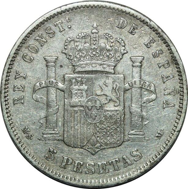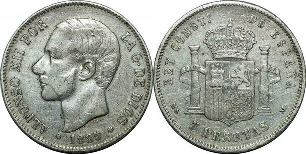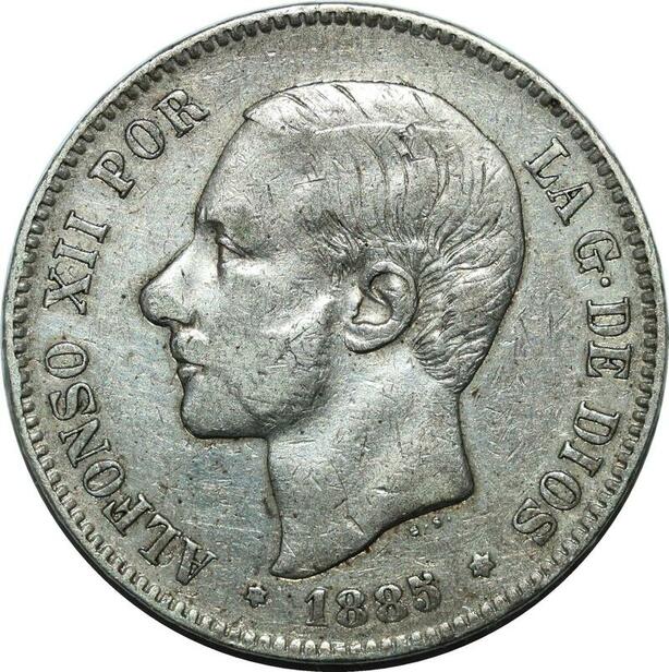 P4256 Spain Espagne 5 Pesetas Alfonso XII 1885 MS M Madrid Silver ->Make offer