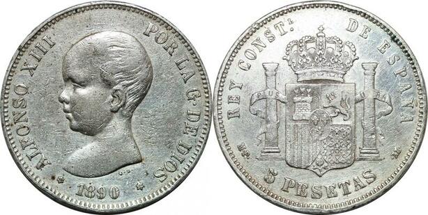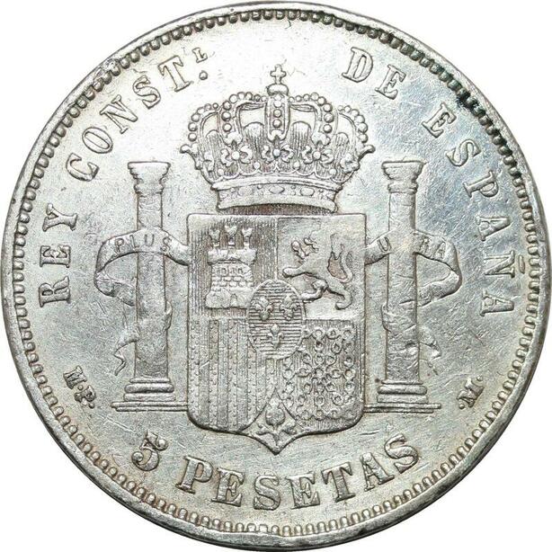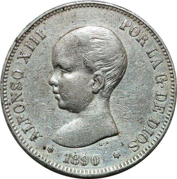 P4260 Spain Espagne 5 Pesetas Alfonso XIII 1890 (??) MP M Madrid Silver