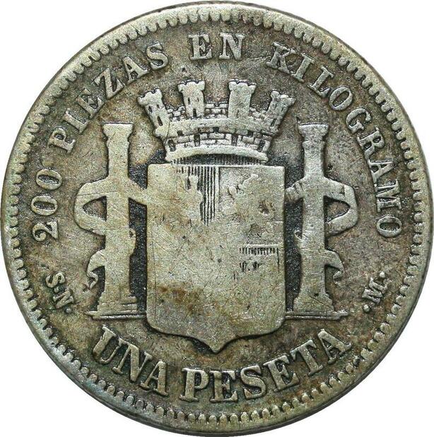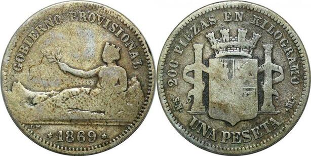 P4268 Spain Peseta Gvt Provisoire Peseta 1869 SN M Madrid Silver