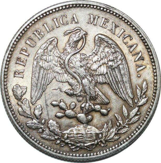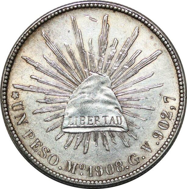 P4273 Scarce Mexico Peso 1908 Mo GV Mexico City Silver AU