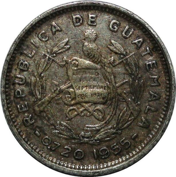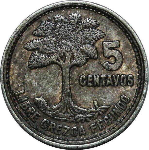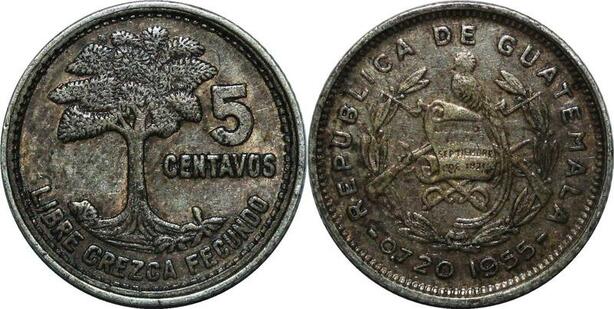 P4300 Guatemala 5 Centavos 1955 Kapok Tree Silver -> Make offer
