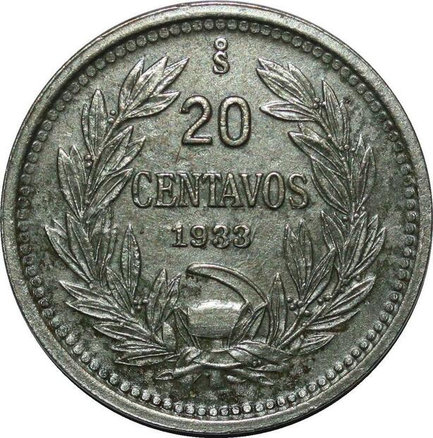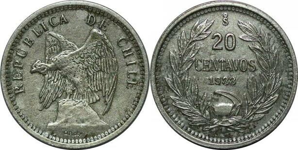 P4301 Chile 20 Centavos 1933 Eagle So Santiago Roty -> Make offer