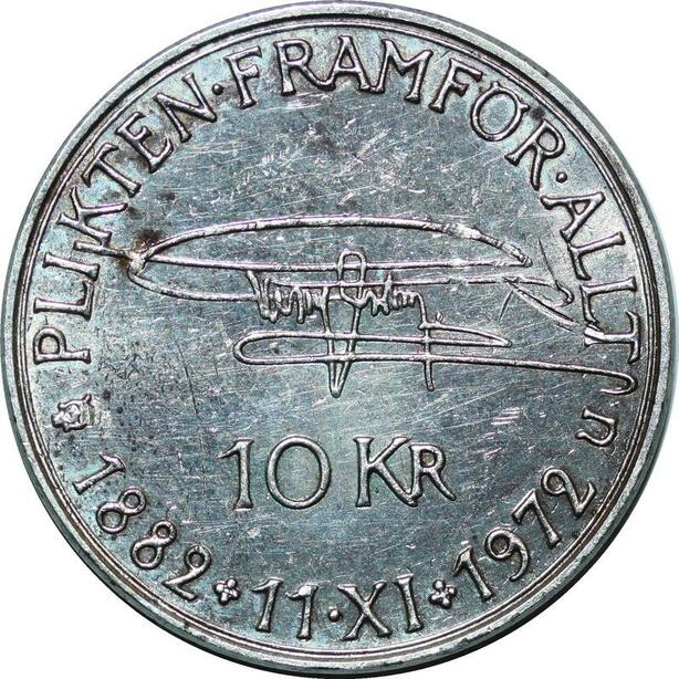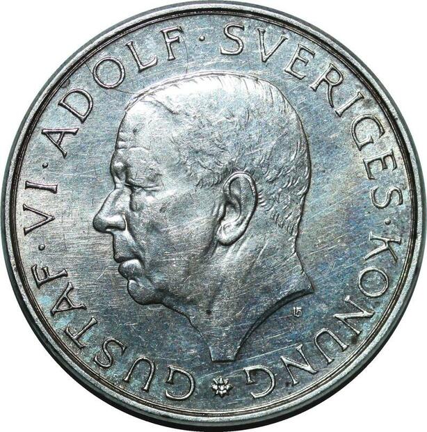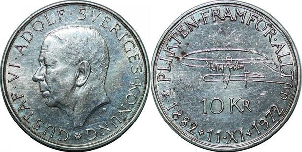 P4324 Sweden 10 Kronor Gustaf VI Adolf Birthday Silver 1882 1972 AU