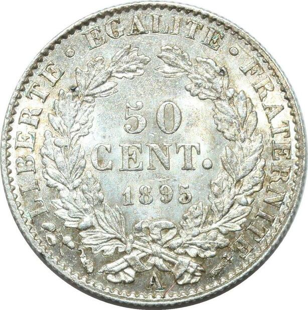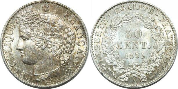 P4334 Rare France 50 Centimes Cérès 1895 A Paris Argent FDC -> Faire offre