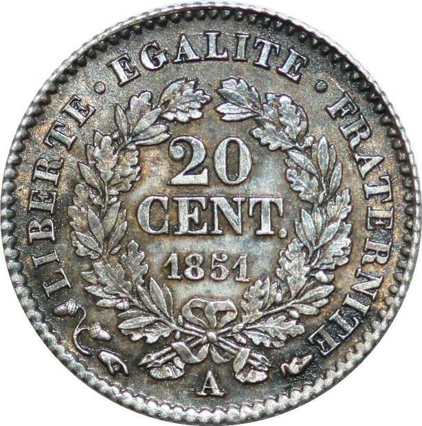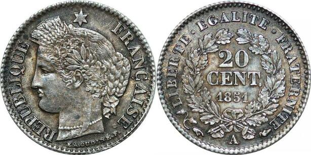 P4338 Rare France 20 Centimes Cérès 1851 A Paris Argent SPL FDC -> Faire offre