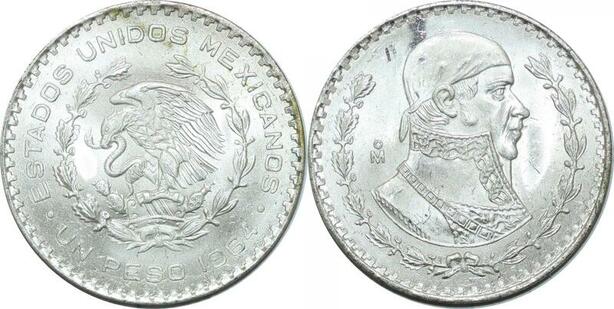 P4360 Mexico Mexique Peso J.M Morelos 1964 Silver UNC -> M offer
