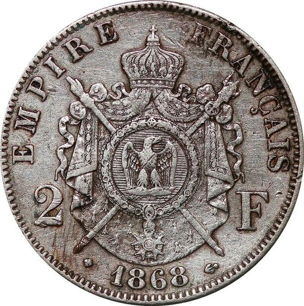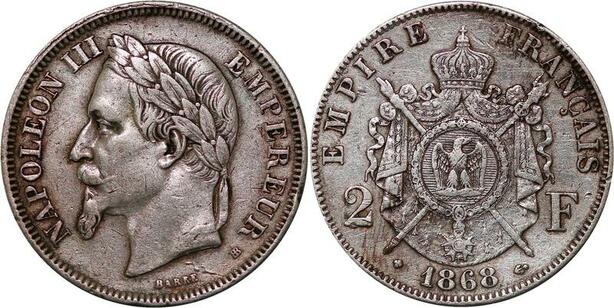 P4388 Rare France 2 Francs Napoléon III 1868 BB Strasbourg Argent -> Faire offre