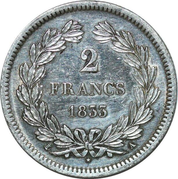 P4396 Rare France 2 Francs Louis Philippe 1833 A Paris Argent Superbe ->F offre