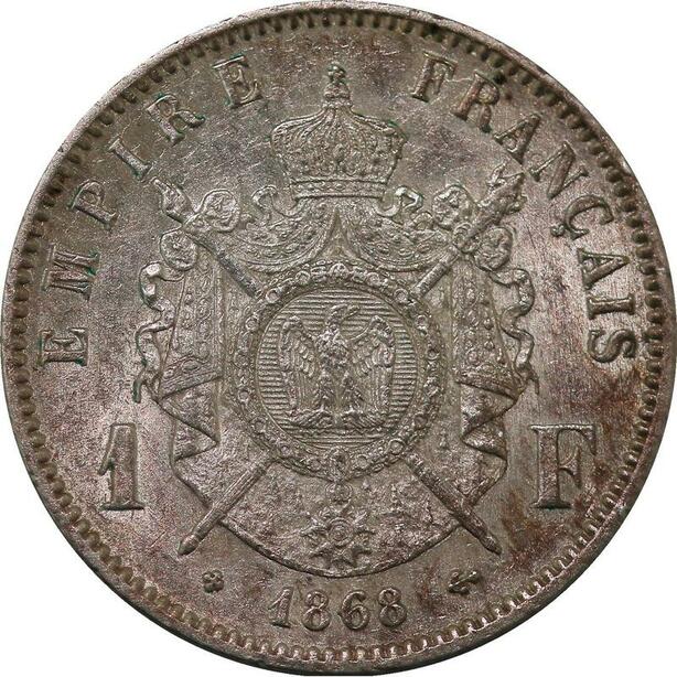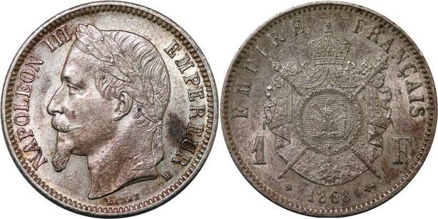 P4404 Rare France 1 Franc Napoléon III 1868 BB Strasbourg Argent SUP -> Faire offre