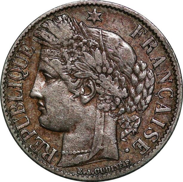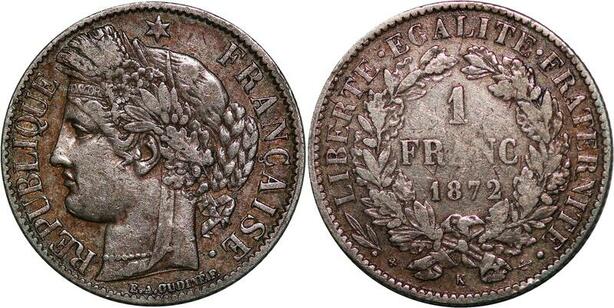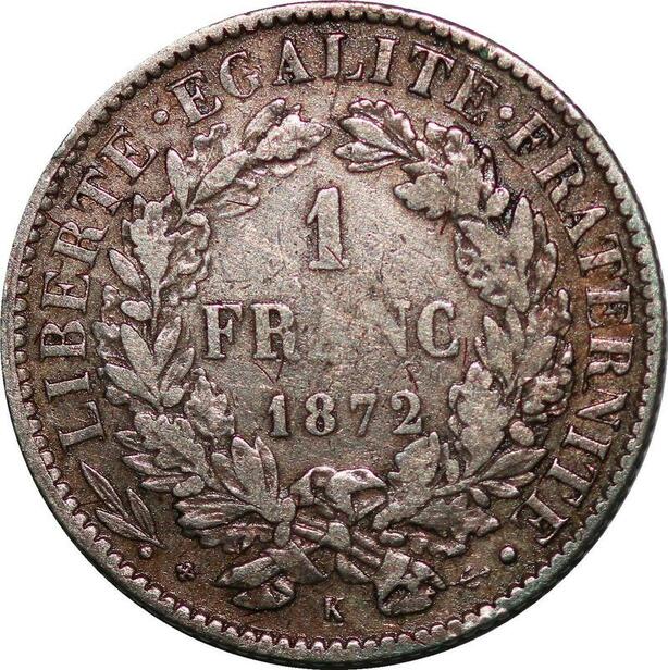 P4409 France 1 Franc Cérès 1872 K Bordeaux Argent -> Faire offre