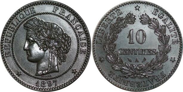 P4415 Rare France 10 Centimes Cérès 1897 A Paris Torche FDC CI -> Faire offre