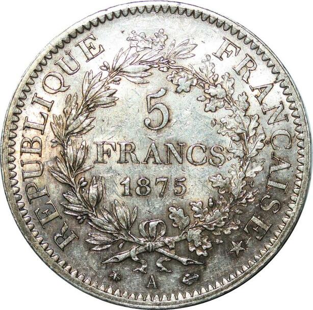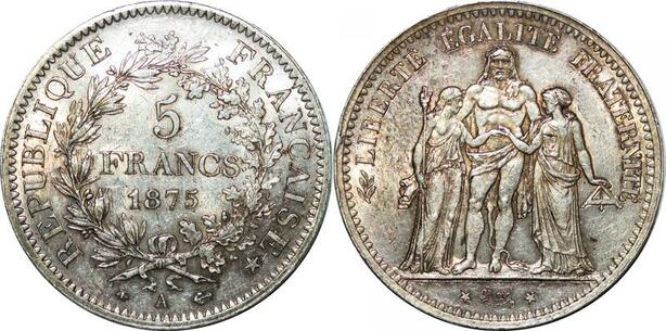 P4439 Rare France 5 Francs Hercule 1875 A Paris Argent Silver SUP + ->Faire offre