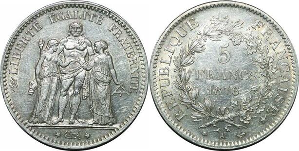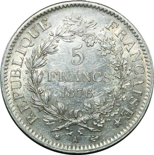 P4443 France 5 Francs Hercule 1876 A Paris Argent Silver SUP ->Faire offre
