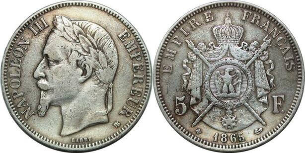 P4457 Rare France 5 Francs Napoléon III 1865 BB Strasbourg Argent Fausse Coin Doctor