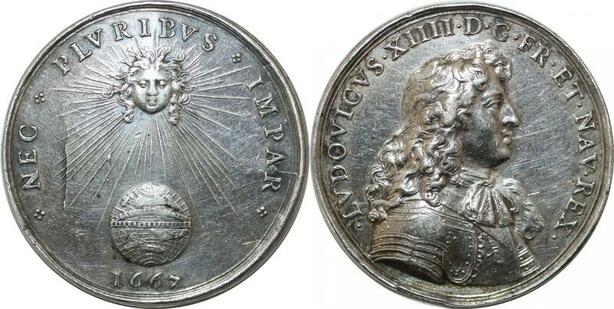 P4487 Très Rare France Médaille Louis XIV Nec Plvribvs Roi Soleil 1667 Silver
